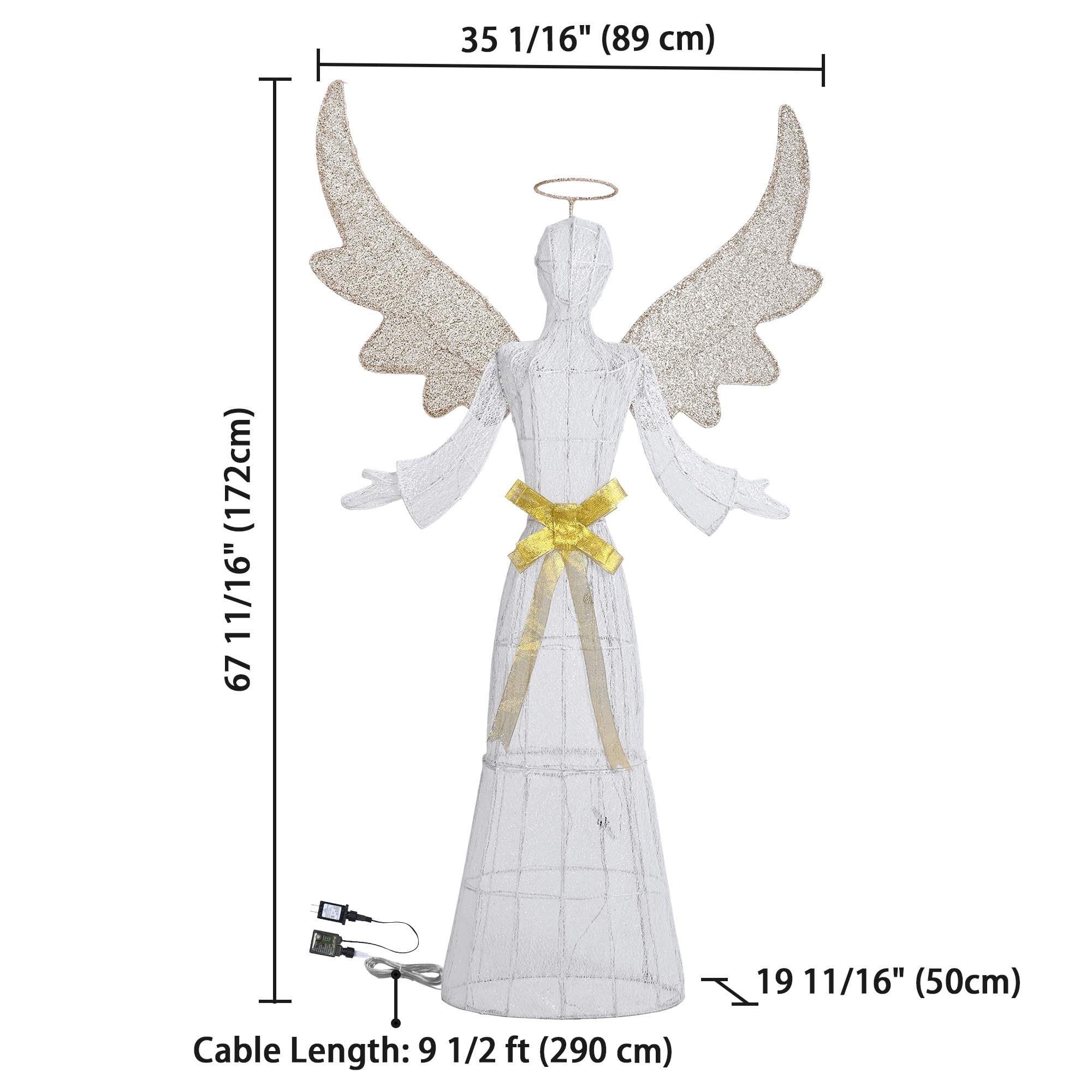 - Announce the Miracle with Glow - This 5.6ft Lighted Christmas Angel, a radiant symbol of faith and the joy of Jesus' birth, spreads hope and grace to all who behold her. Adorned with golden glitter wings and a halo, the angel illuminates your yard with a cozy, divine glow, reminding you of the joyful message of Christmas