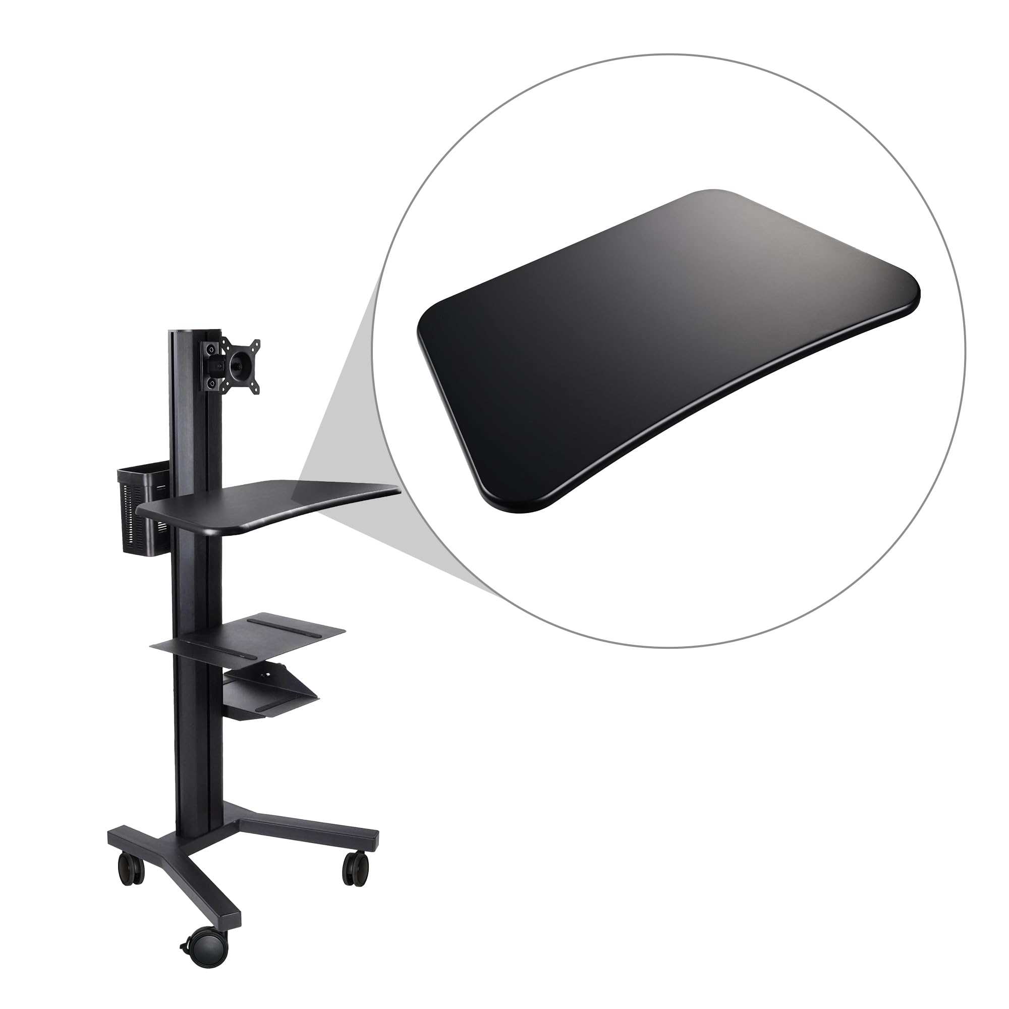 - Easy to Install - Easy and fast to install in minutes, simply attach the desktop tray to the pole of mobile cart and secure it with screw